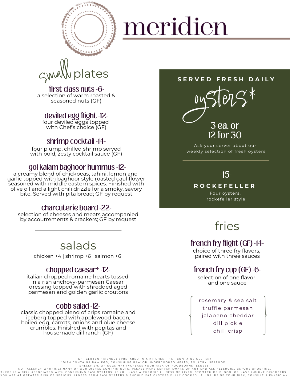 We feature a rotating menu of small plates!